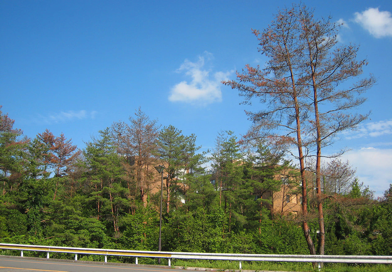 マツ枯れを放置すれば、荒廃した時期を過ぎ、広葉樹林、次に照葉樹林と、自然に遷移が起きます。しかし、これには相当な年月を要します。人の手を加え、アカマツ二次林を再生する方が、森林としての回復は格段に早く、キャンパスの森林による二酸化炭素吸収量も向上させることができます。