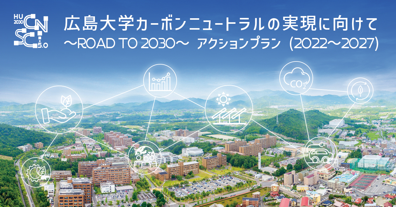 広島大学は、カーボンニュートラルの実現に向けた⾏動計画として、「広島⼤学カーボンニュートラルの実現に向けて 〜Road to 2030〜 アクションプラン (2022〜2027)」を策定しました。