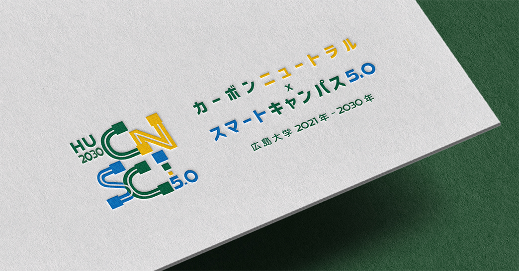 「カーボンニュートラル×スマートキャンパス5.0宣言」および関連する取組や研究成果等の国内外へ向けた発信力向上、広島大学の学生・教職員が一丸となって取り組む気運を高めるため、「カーボンニュートラル×スマートキャンパス5.0(CN × SC 5.0)」ロゴを作成しました。