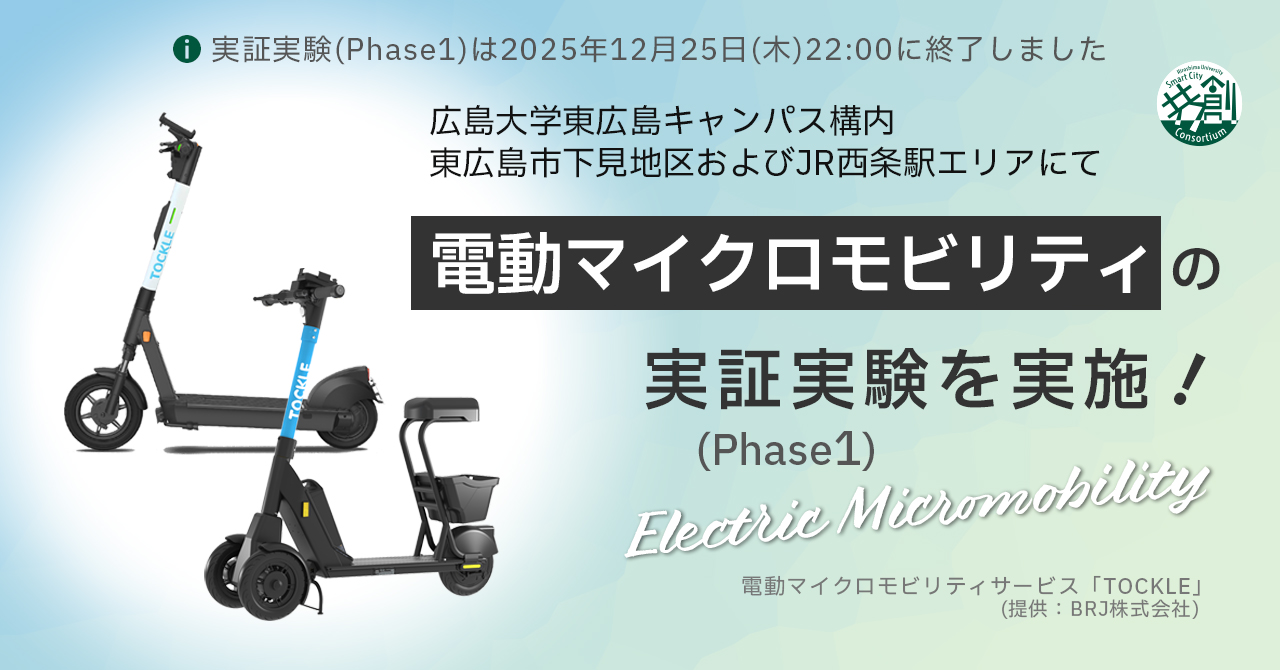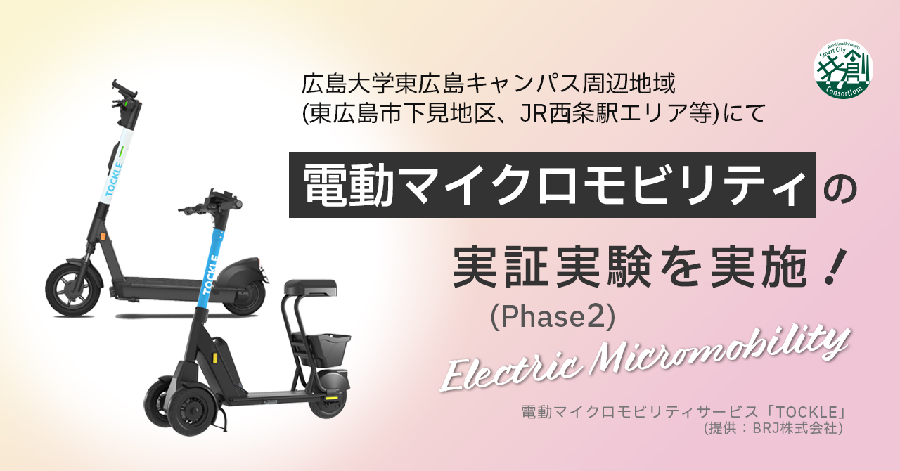 【終了しました】電動マイクロモビリティの実証実験(Phase1)広島大学東広島キャンパス構内、東広島市下見地区およびJR西条駅エリアに電動マイクロモビリティを設置し、実証実験を実施しました。