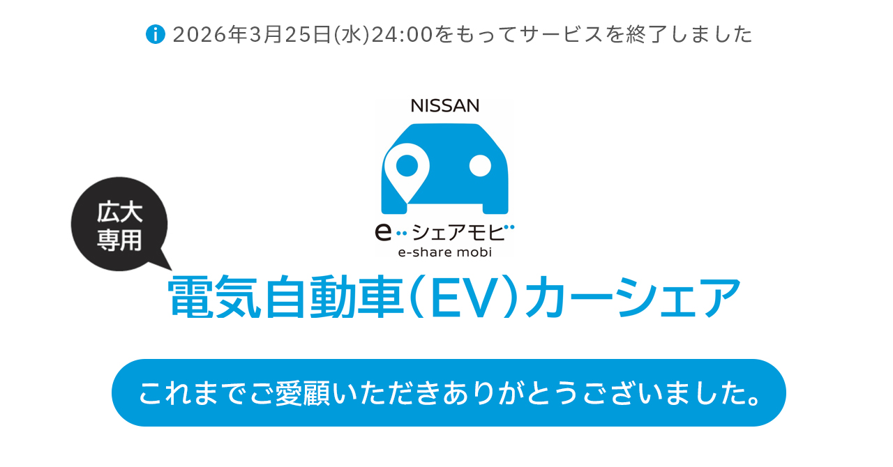 東広島キャンパス北第3駐車場にオープンした「電気自動車(EV)カーシェア」のステーションは、 2026年3月25日(水)24時をもってサービスを終了しました。