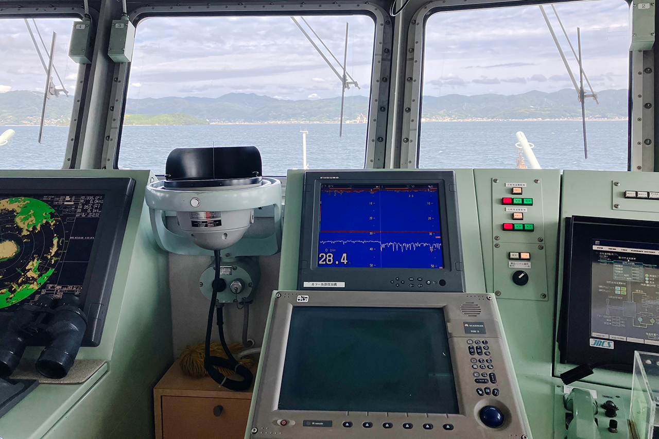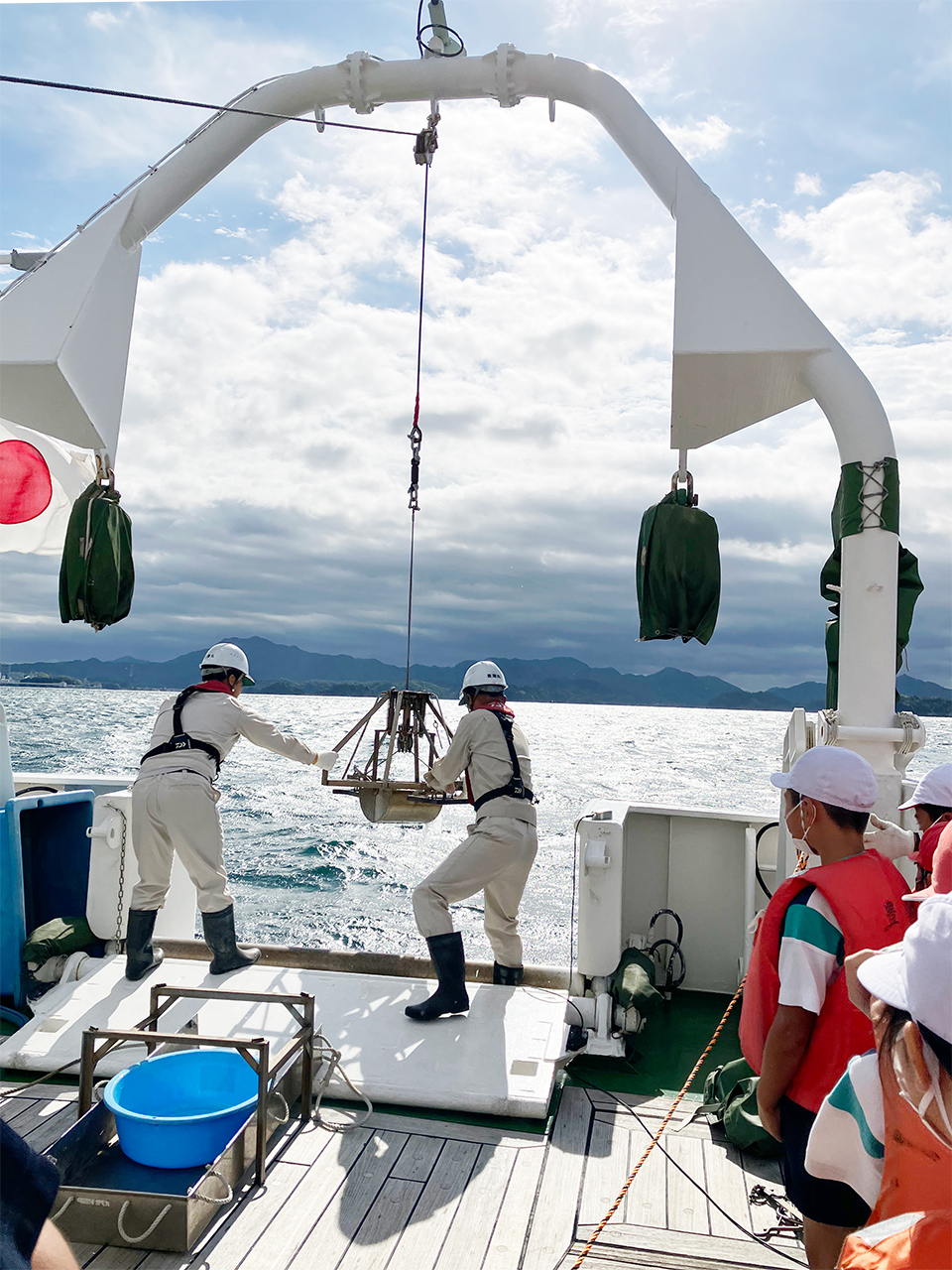 教育や研究調査のため瀬戸内海のみならず広い海域で活躍する豊潮丸と、初めて調査船に乗り興味津々な児童の様子をご紹介します。